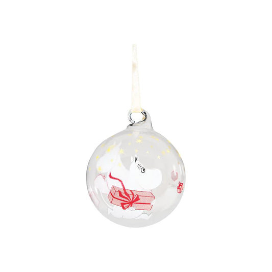 Moomin Glass Christmas Gifts Ornament - Finnish Holiday Presents Handblown Garland Bubbles 2.75 in (7 cm)